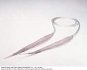 Metalldrähte wie Fäden verarbeitet. Man denkt z.B. an die